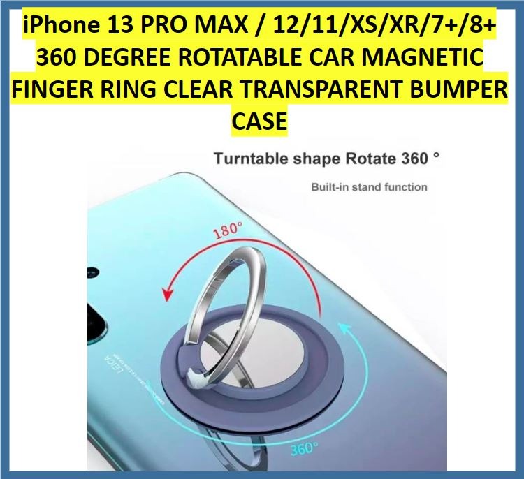 Iphone 13 Pro Max 13 Pro 12 Pro 11 Xs Xs Max Xr 7 8 360 Degree Rotatable Car Magnetic Finger Ring Clear Transparent Bumper Case